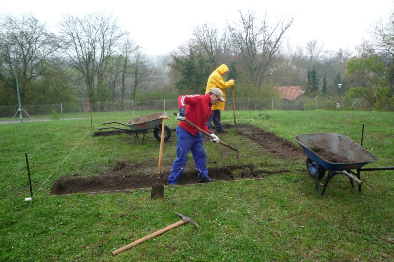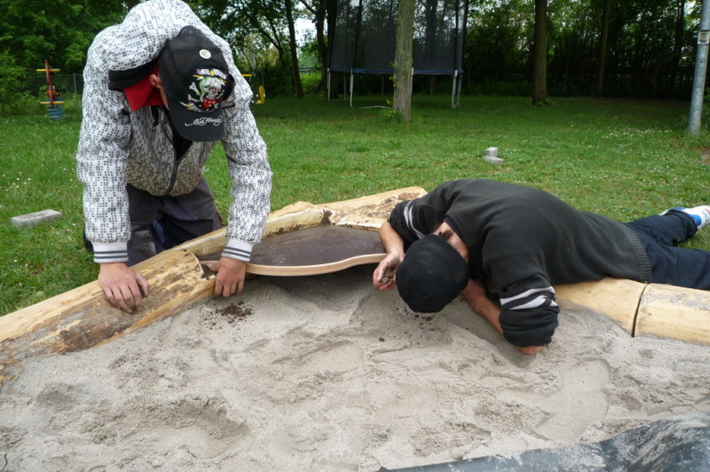 Wir bauen mit unseren Jugendlichen einen Sandkasten für die Kinder des Kinderlandes Tafelsbrunnen.